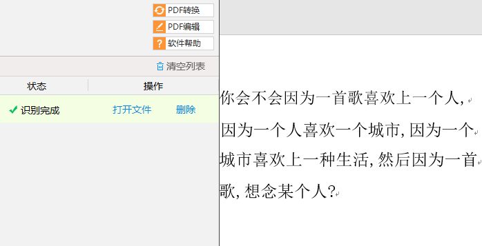 第五步,由于字體原因,可能少部分文字識別會出現(xiàn)錯誤,我們可在軟件右側(cè)所識別的文字進(jìn)行修改,確保所識別出來文字的準(zhǔn)確性。