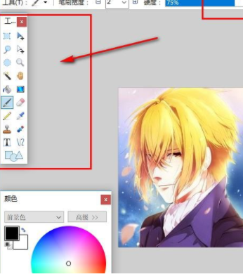 2、加載圖片完成以后,點(diǎn)擊左邊的操作區(qū)域,點(diǎn)擊選擇一個(gè)合適的繪畫(huà)工具渲染您的圖片,支持漸變、亮度調(diào)整。