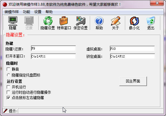 一、裝模作樣怎么隱藏游戲界面?軟件界面