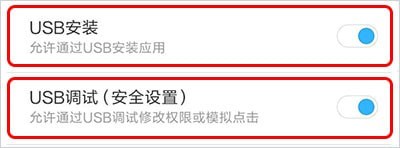 注意:如果您是小米和Vivo 系列手機,還需要打開“USB 安裝” 和 “USB 調(diào)試(安全設(shè)置)”,才能確保電腦可以正??刂剖謾C。