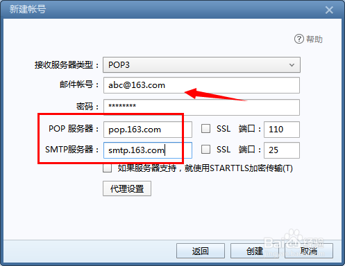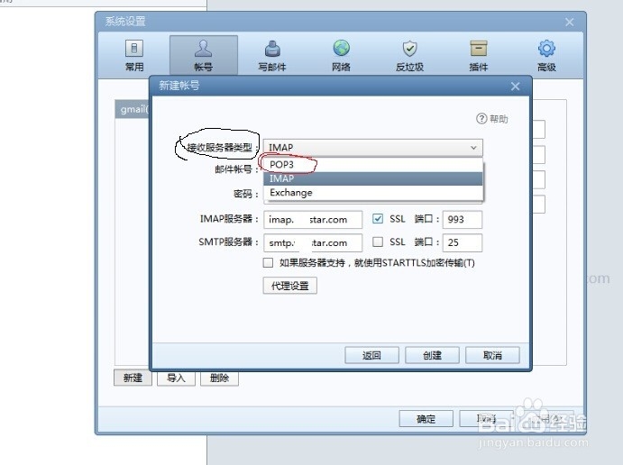 在”新建賬號(hào)“這個(gè)窗口,有一個(gè)項(xiàng)目是”接收服務(wù)器類型“。問(wèn)題就是出現(xiàn)在這,記住要在下拉選項(xiàng)選擇”POP3",而不是"IMAP"。而后點(diǎn)擊創(chuàng)建