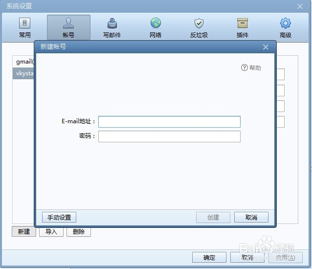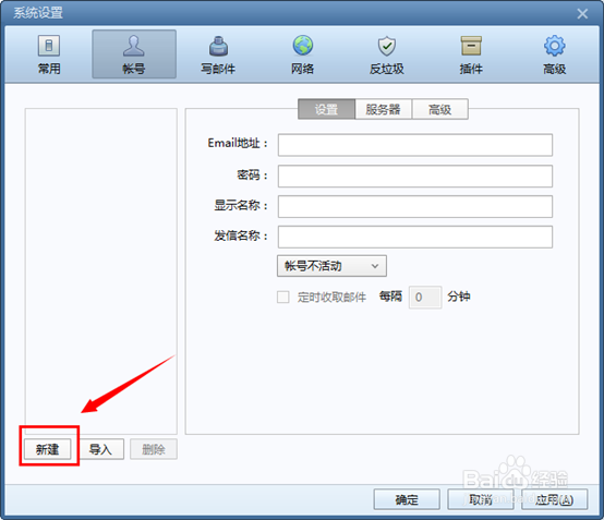 同樣在賬號(hào)設(shè)置的選項(xiàng)卡中,點(diǎn)擊選擇”新建‘功能來(lái)新建添加賬號(hào)