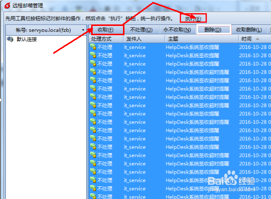 5、單擊刪除按鈕然后選擇執(zhí)行就可以將你服務(wù)器的郵件刪除: