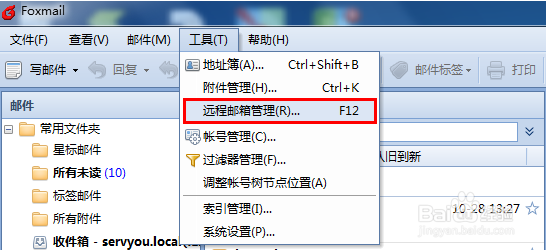 3、然后再單擊工具,選擇遠(yuǎn)程郵箱管理: