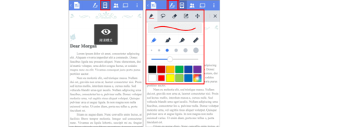“閱讀模式”提供對(duì)閱讀文檔進(jìn)行優(yōu)化的畫(huà)面,使用“移動(dòng)閱讀模式”可隱藏文檔內(nèi)空白處,使用畫(huà)筆可標(biāo)記文檔內(nèi)重要內(nèi)容。