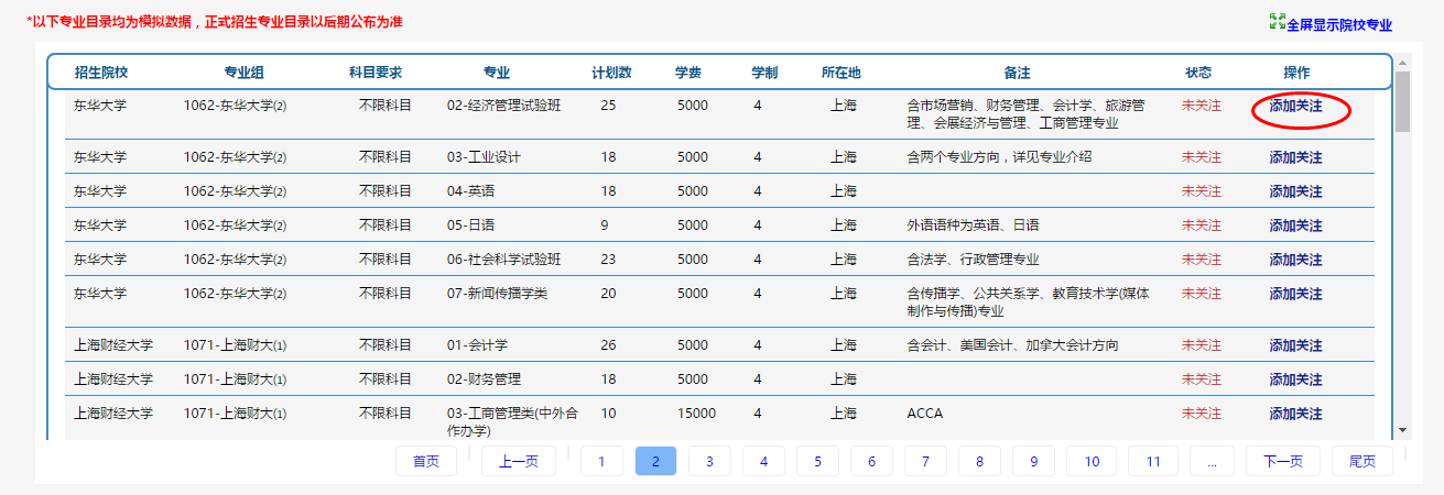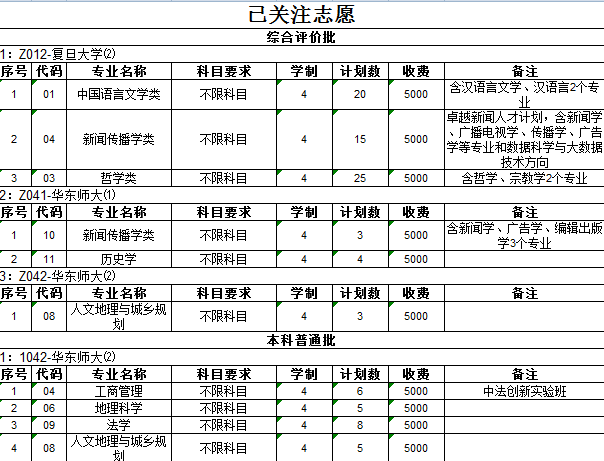 詳細(xì)的已關(guān)注院校和專業(yè)如下圖所示: