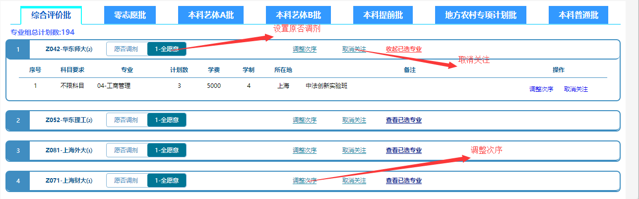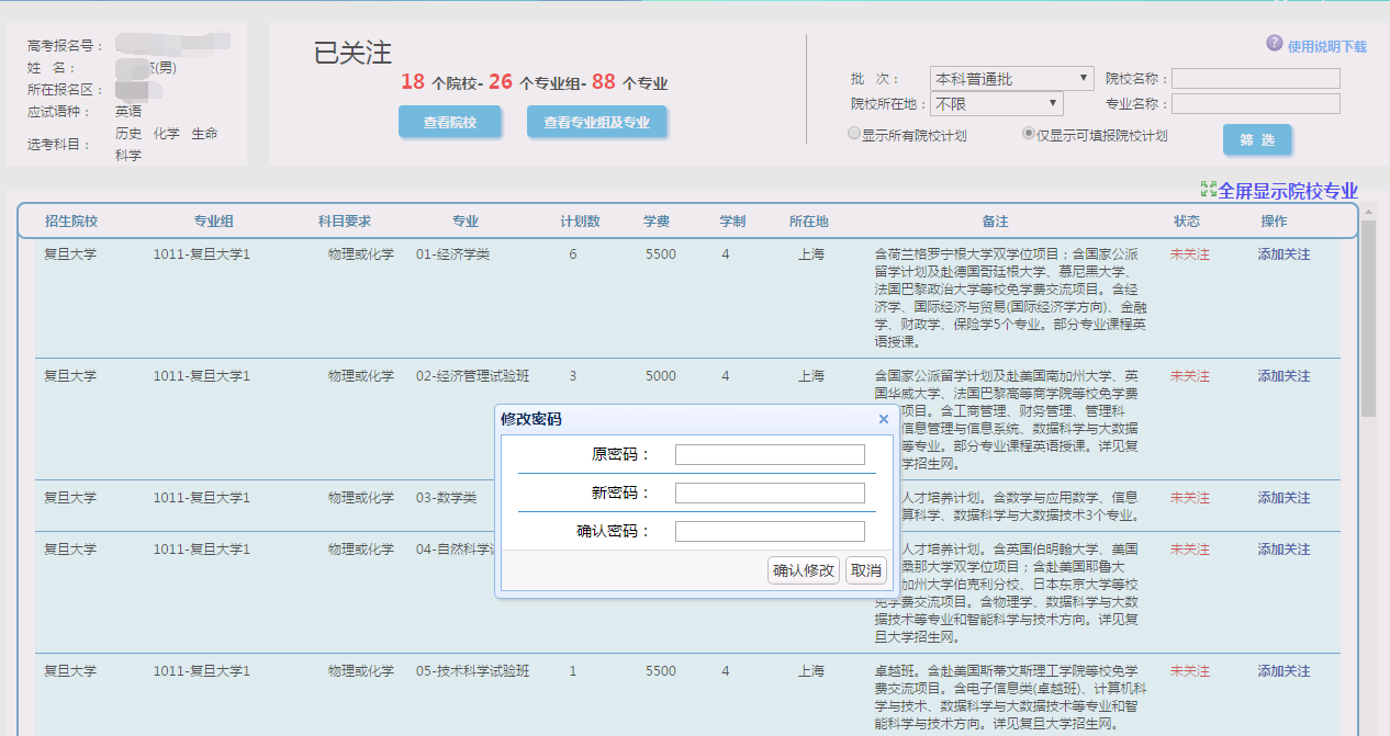 1.3.調(diào)整已關(guān)注院校專業(yè)