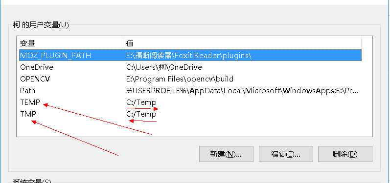 將用戶變量的Temp選項(xiàng)和TMP選項(xiàng)修改為如圖所示的路徑即可,再次進(jìn)行編譯,一般是可以的了