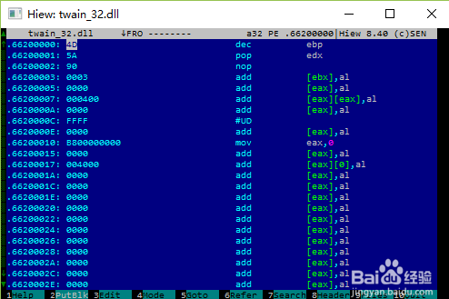 啟動HIEW,進入程序界面如下圖所示!win10下有部分亂碼,不影響