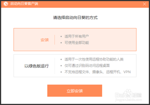 您可以選擇本機安裝或非本機安裝被控端,安裝成功后將自動通過葵碼登陸向日葵被控端。