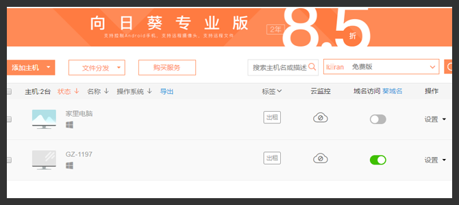 主控方訪問向日葵官網(wǎng),使用帳號登錄進入向日葵管理,被控端主機將會顯示在主機列表中,直接點擊在線主機便可以對被控端主機進行遠程控制了。