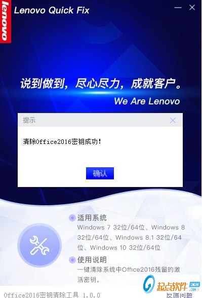 如果系統(tǒng)內(nèi)沒(méi)有殘留的密鑰,工具則會(huì)提示“沒(méi)有Office 2016密鑰”,點(diǎn)擊“確認(rèn)”關(guān)閉提醒信息