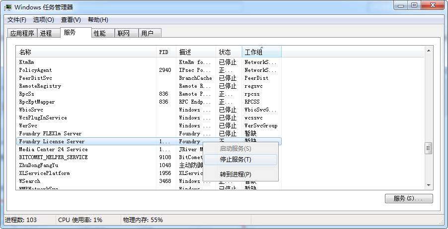 11、將Foundry License Server服務(wù)項(xiàng)重新啟用,然后關(guān)閉Foundry License Utility,破解完成