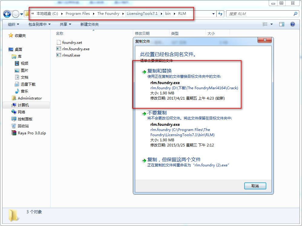 4、將crack文件夾下的rlm.foundry.exe復(fù)制到軟件以下路徑,如圖所示,點(diǎn)擊替換目標(biāo)中的文件