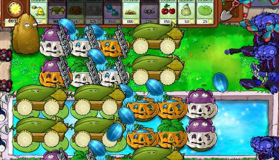 冰瓜或西瓜、喚醒后的噴菇對(duì)于扶梯僵尸的殺傷力都是致命的。在面對(duì)面的攻擊中往往要在很多炮灰植物的配合下,扶梯僵尸才能勉強(qiáng)看見第一個(gè)南瓜長(zhǎng)什么樣,繼續(xù)搭梯子是不可能的。那么,這時(shí)可以用大蒜改變一下僵尸的位置,避開植物的主火力輸出,一舉入陣架梯成功。