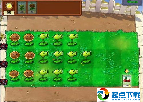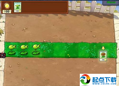 這一關(guān)沒什么好說的,相當(dāng)于教程關(guān)。點(diǎn)太陽,擺豌豆。