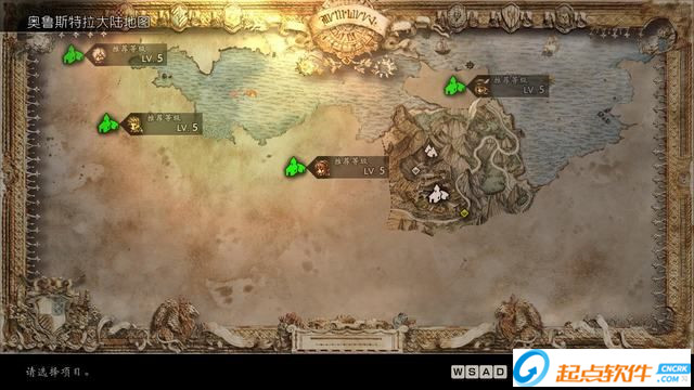 從游戲名稱可以看出游戲共有8塊區(qū)域,每個區(qū)域都是一位英雄的起始地點,Cyrus從平原之地啟程,Ophilia從寒霜之地啟程,H’aanit從樹林之地啟程,Therion從高崖之地啟程,Alfyn從河流之地啟程,Primrose從日光之地啟程,Olberic從高原之地啟程,Tressa從海岸之地啟程。