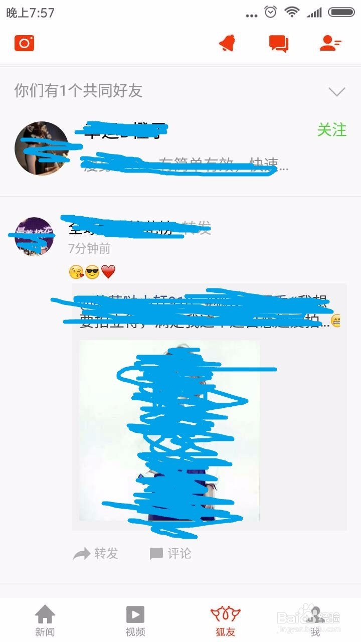 返回到狐友首頁,在朋友圈中可以看到”晴空abc”的分享消息