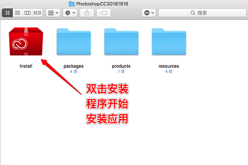 安裝完成后,用戶可以在“訪達”——“應(yīng)用程序”中找到“Adobe Photoshop CC 2018”文件夾,里面包含了安裝好的“Photoshop CC”應(yīng)用,雙擊運行即可。