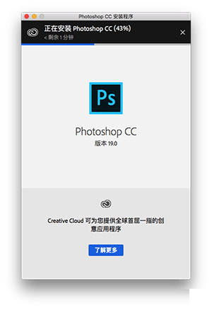 用戶登錄自己的Adobe賬戶之后,安裝即會開始,安裝過程可能比較長,耐心等待即可。