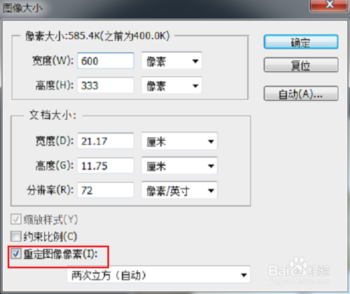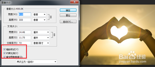 5、我們?nèi)∠s放樣式,約束比例的勾選,重新設(shè)置寬高,如下圖所示: