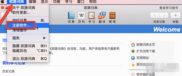 3、然后打開歐路詞典App,找到注冊軟件點擊下去,打開即完成注冊了,之后就可一直使用歐路詞典了。