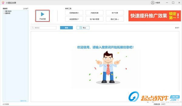 小鹿創(chuàng)意拓展工具是一款創(chuàng)意拓展工具,可以根據(jù)關(guān)鍵詞幫助用戶搜索一些創(chuàng)意,幫助用戶提升工作效率及速度,能夠快速找到大批高質(zhì)量的創(chuàng)意,重點(diǎn)是使用免費(fèi),有需要的快來(lái)下載吧。【軟件特色】