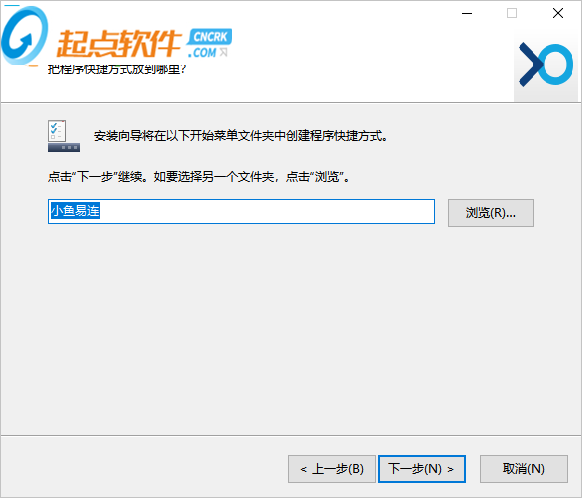3、安裝程序自動(dòng)進(jìn)入快捷方式設(shè)置的界面,名字為小魚易連