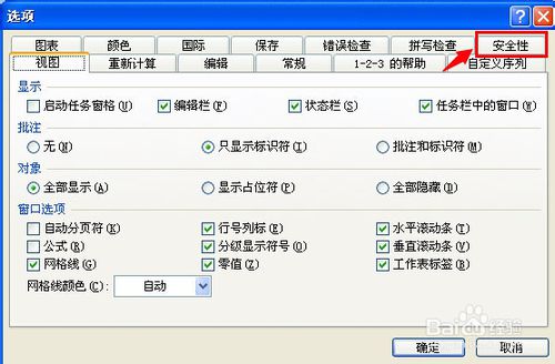 接著在彈出來的選項窗口中,找到右上角的“安全性”選項菜單,并點擊這個按鈕。(如下圖)