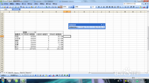 單擊數(shù)據(jù)透視表,以顯示【數(shù)據(jù)透視表】工具欄和【數(shù)據(jù)透視表字段列表】面板。