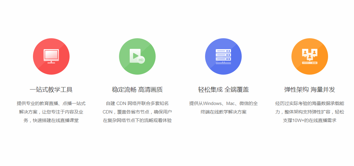 一站式教學(xué)工具提供專業(yè)的教育直播、點(diǎn)播一站式解決方案,讓您專注于內(nèi)容及業(yè)務(wù),快速搭建在線直播課堂