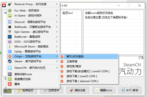 2、這款多平臺(tái)Hosts修改工具還可以檢測(cè)部分游戲的鏈接情況,支持的游戲商店列表及游戲列表