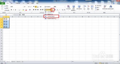 3、然后點擊合并單元格,如圖所示: