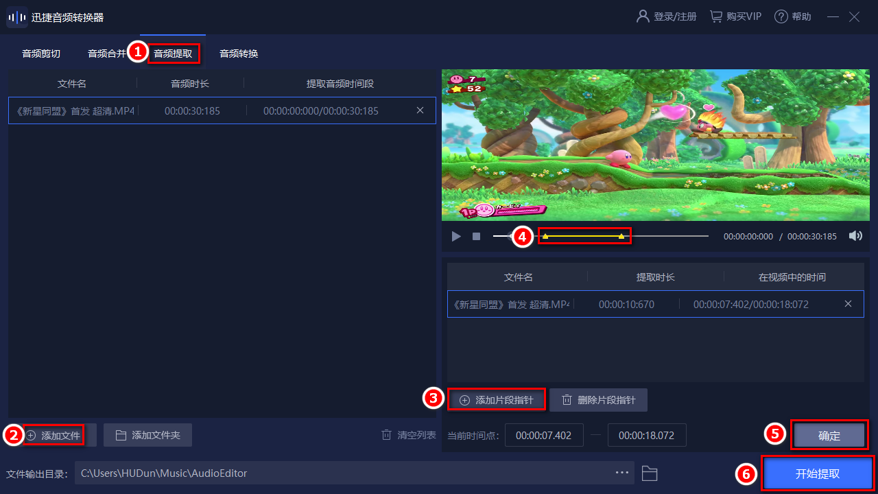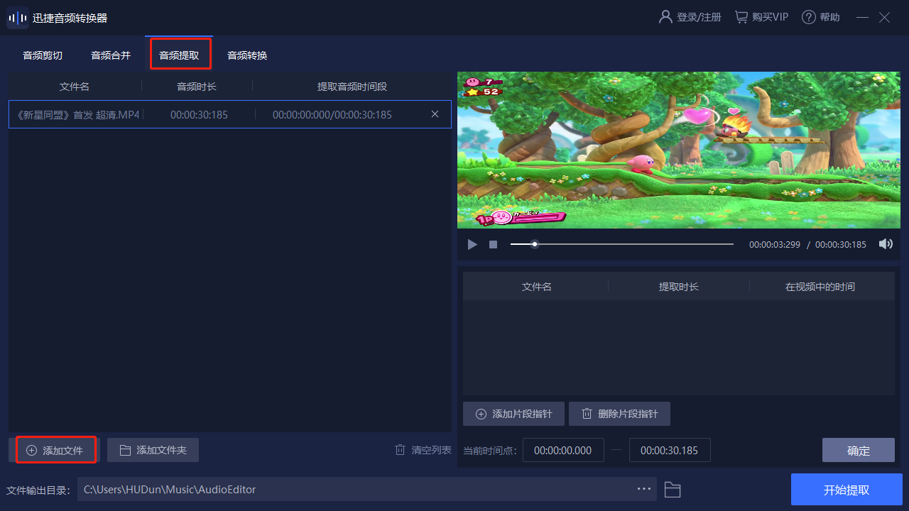 我們可以添加一個(gè)自己想要提取音頻的視頻文件,然后根據(jù)自己的要求調(diào)整提取音頻的位置。完成后,就可以選擇開始提取了。