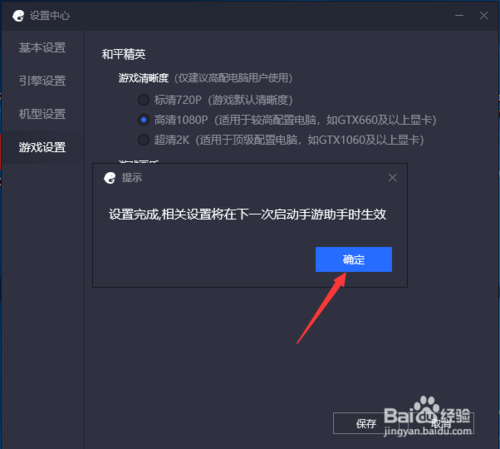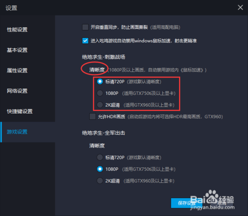 進(jìn)入畫面設(shè)置主界面,游戲清晰度度默認(rèn)是720p,選擇高清1080p,這樣清晰度會很好,如果自己的電腦非常好,可以選擇超清2k。