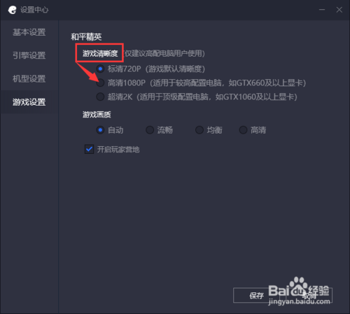 游戲畫質(zhì)默認(rèn)是自動,我們可以選擇高清。