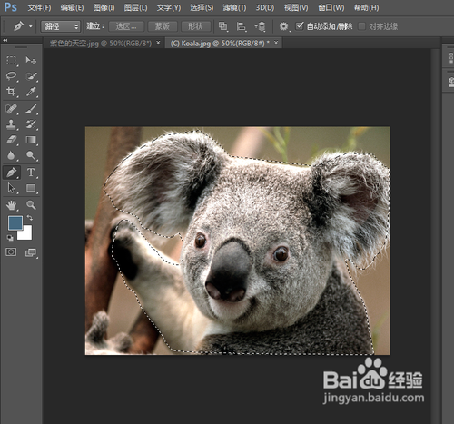 然后我們要用鋼筆工具對著你要處理的圖片進行描邊,即在你想摳出來的區(qū)域的邊緣描一下。描完按鍵盤ctrl加回車鍵即可選定。