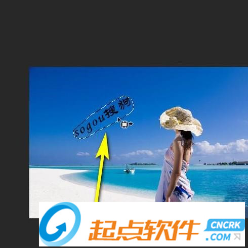 鼠標點住選區(qū),向文字側邊挪動,當看到選區(qū)內的文字不見了。這時就可以松開鼠標了;按下CTRL+D取消選擇,那么,水印即去除。