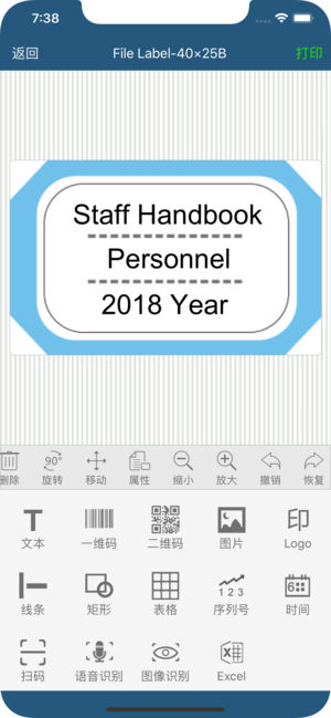 藍(lán)牙連接,界面簡潔,操作簡便,標(biāo)簽設(shè)計功能強(qiáng)大,所見即所得,真正實現(xiàn)標(biāo)簽的移動打印。