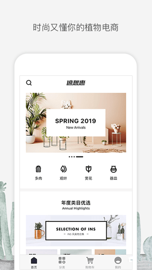 1. 定制首頁:每日推薦精選商品,四季時令植物2. 精致商城:多樣化分類檢索,園藝師精選商品
