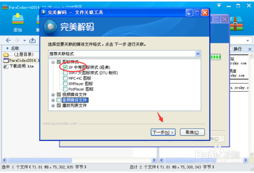 4、然后還要安裝一個(gè)文件關(guān)聯(lián)工具,我的安裝系統(tǒng)是xp,所以選擇xp中等樣式圖標(biāo)就可以了,然后下一步。