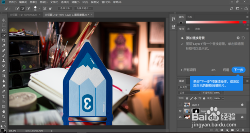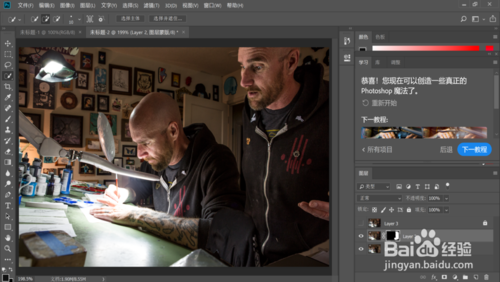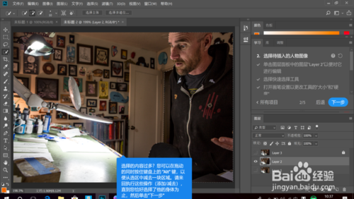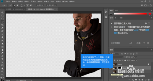 首先先打開兩張你需要編輯的圖片,單擊圖層layer2以便于我們編輯它。