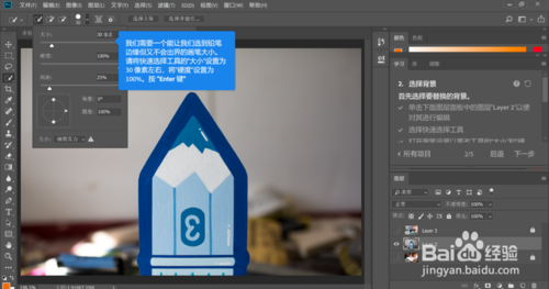 我們需要選擇這張圖片上面的鉛筆,所以需要將工具的大小設(shè)置為30,硬度設(shè)定為100%