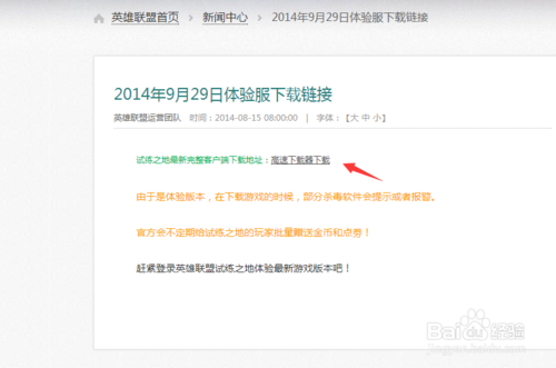 跳轉(zhuǎn)到下載頁面,點擊圖中下載鏈接,預(yù)留三個多G的空間。下載完之后,安裝,接著登陸你的游戲,跟正式服是一樣的。