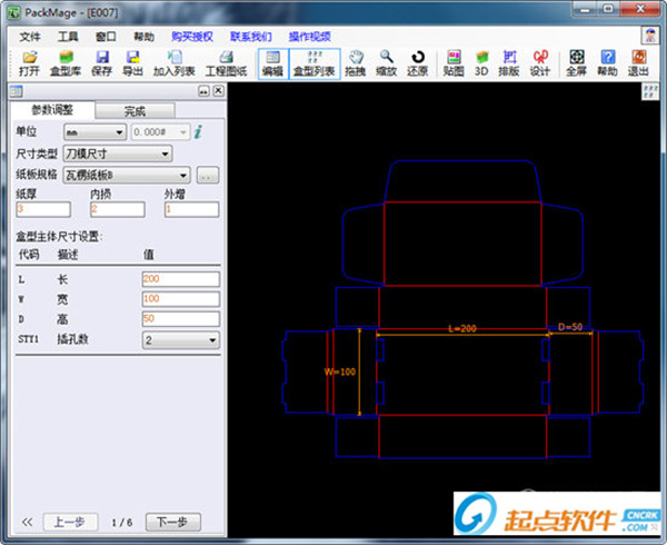 3、設(shè)計(jì)功能:作為盒型的設(shè)計(jì)工具,該功能肯定是不能缺少的啦。在這里用戶可以進(jìn)行盒型的具體化設(shè)計(jì),從盒型庫導(dǎo)出盒型就可以在這里進(jìn)行設(shè)置,此外還可以進(jìn)行一鍵3D定義哦。
