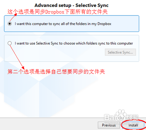 選擇了空間以后,接下來選擇 Dropbox 在本地電腦端同步的文件夾,這里我們選擇“Advanced”,如下圖所示
