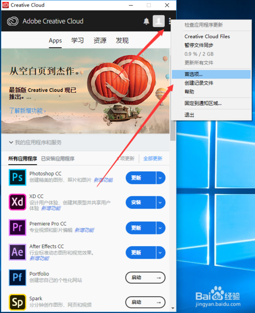 Adobe Creative Cloud和軟件安裝位置設(shè)置問題?1、我們打開云工具cloud,點擊右上角三個點,進入首選項設(shè)置里面。我們接下來將進行位置的設(shè)置。