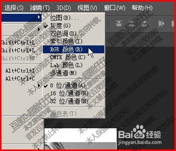 7、鼠標在這子菜單中,點擊:RGB顏色