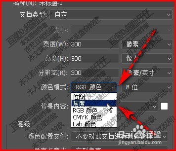 2、我們把文檔的寬度與高度設(shè)置好后,再看顏色模式這里。