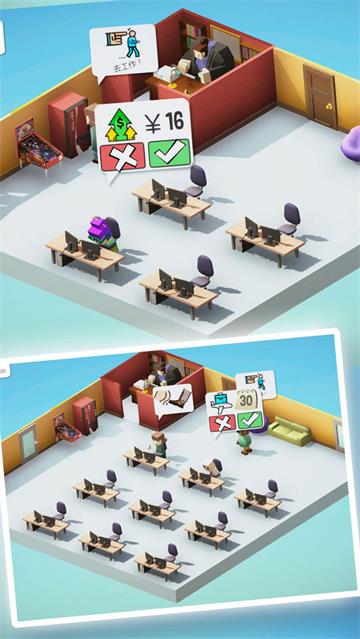 辦公室大作戰(zhàn)游戲功能:招聘員工來(lái)為你工作,從而增加自己財(cái)富